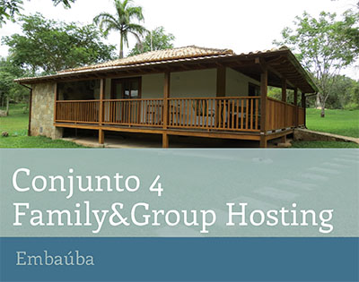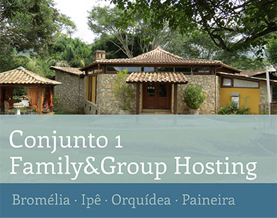Quatro suítes Categoria I completas e independentes, reunidas na mesma casa, com camas extras, ampla sala de estar comunitária, varandas, com direito ao uso da cozinha principal da pousada, com fogão a lenha, geladeira e utensílios para oficinas culinárias. Acolhe grupos de até 17 pessoas. Clique no nome da suíte para ver fotos e detalhes.